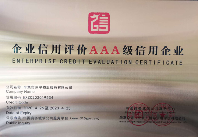 | 企業(yè)信用評價(jià)AAA級(jí)信用企業(yè) |